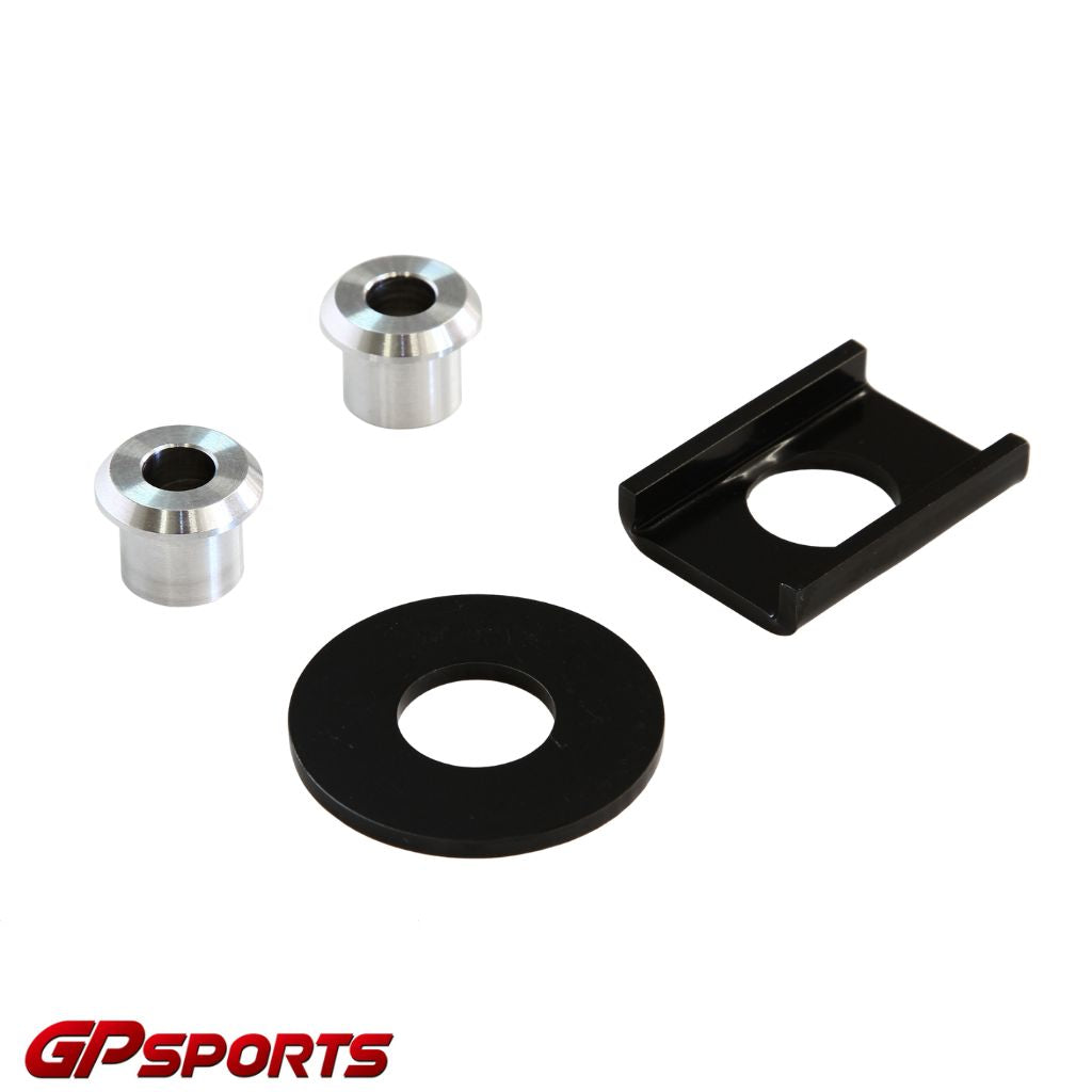 純正マウントにこの「マウントスペーサー」を挿入することで、トランスミッションの無駄な動きを抑えることができます。これにより、シフトチェンジの難しさが軽減され、走行中のミスシフトを防ぎます。また、シフトフィーリングもよりシャープになり、スムーズなギアチェンジが可能になります。(左の画像は分かりやすいように製品の色を変えていますが、実際の製品は黒です。)